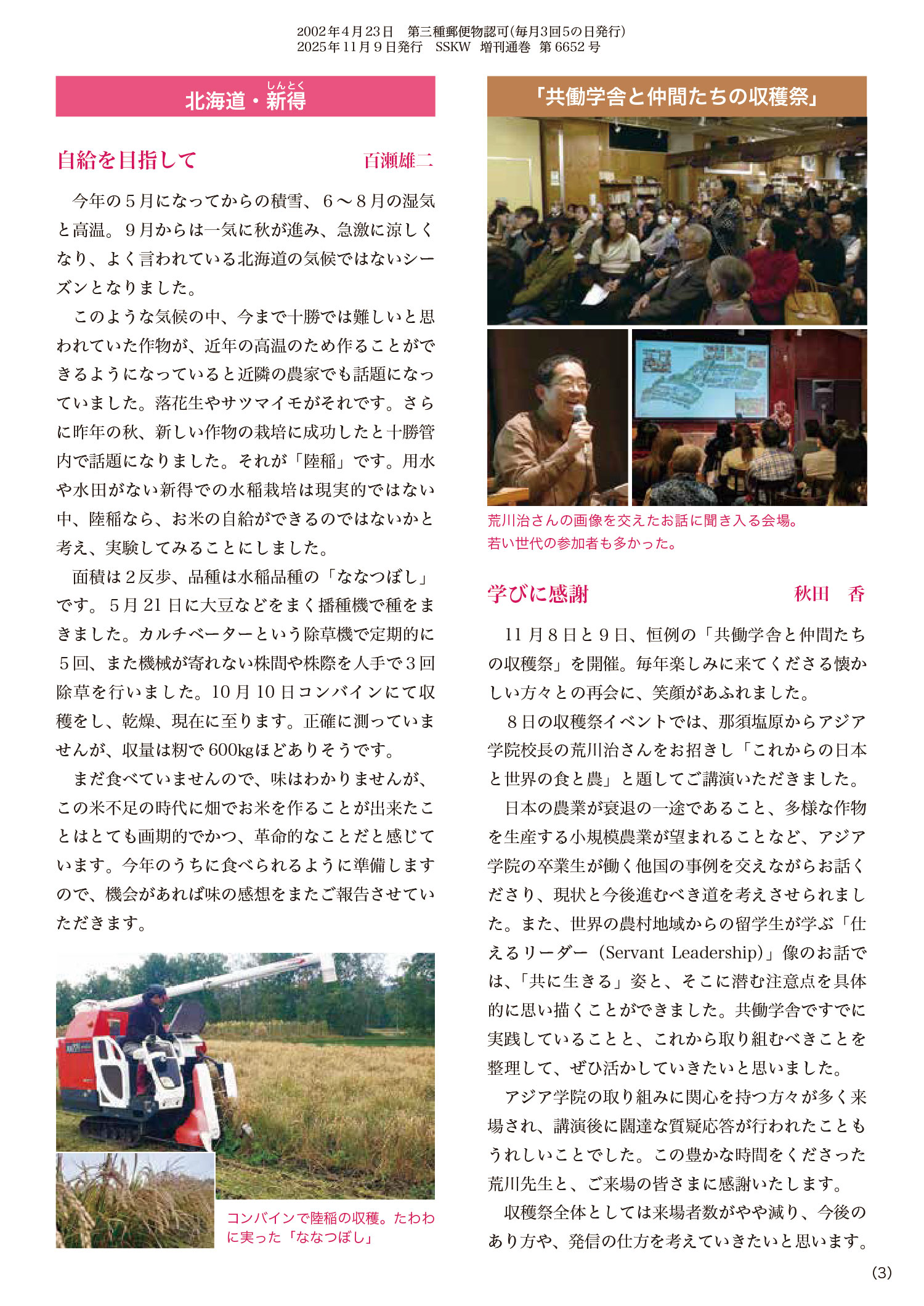 猛暑の後に訪れた秋。各地から収穫の様子などをお伝えします。 今年の収穫祭にも多くの方がお越しくださり、出会いも楽しいひとときを過ごしました。 関連記事 NEWお知らせ立屋真木 2025年12月23日【信州共働学舎】ご好評につき、新米は完売いたしました お知らせ全体 2025年12月12日今年も「冬のお楽しみセット」をご用意しました NEWお知らせ全体真木 2025年11月16日12月5~7日「10年後の今、真木を語る」写真/上映/トーク